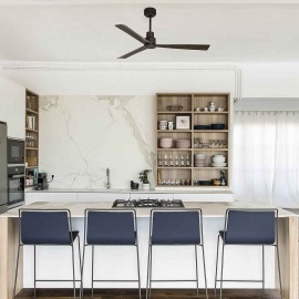 Nassau modèle de plafond modèle sans lumière, 128 cm. de diamètre et 40 cm. haut. Moteur DC fabriqué en acier de finition brun foncé avec trois palas de bois MDF finissant marron. Alimenté par la télécommande incluse.