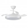 DC PITIJOPO S ventilateur de plafond, avec led intégrée, choisissez entre les 2 finitions disponibles, blanc et noir. Et parmi ses variantes avec des tuiles ou des fleurs plus attachées au plafond.