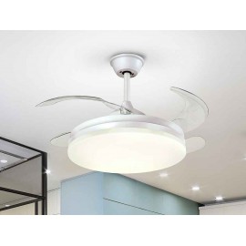 Ce modèle de ventilateur a un design moderne et grâce à son format, avec des lames pliantes, nous pouvons l'utiliser comme lampe tout au long de l'année, en plus de pouvoir choisir le type de lumière qui nous intéresse le plus à chaque moment, qu'il soit chaud-neutra-fria.