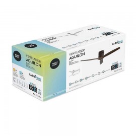 AGUILON ventilateur de plafond léger avec moteur DC, en métal, bois et polycarbonate, en couleur MARRON OSCURO avec trois poignées colorées ROBLE.