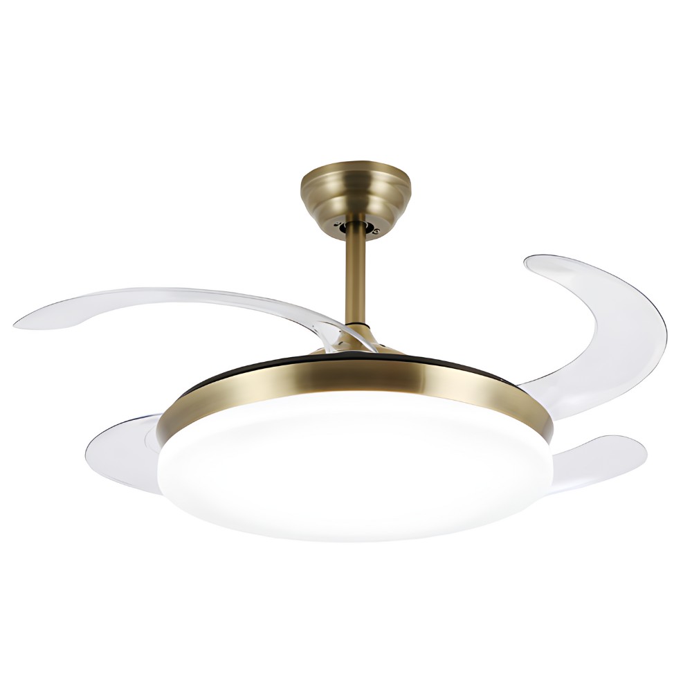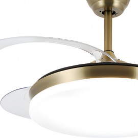 Modèle de ventilateur ISABELLA en finition blanche avec quatre lames de métacrylate transparent et hautement résistantes.