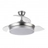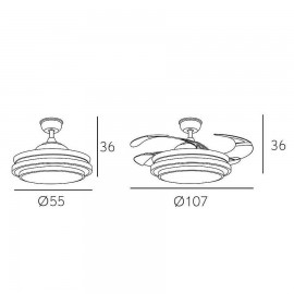 Ce modèle de ventilateur a un design moderne et grâce à son format, avec des lames pliantes, nous pouvons l'utiliser comme lampe tout au long de l'année, en plus de pouvoir choisir le type de lumière qui nous intéresse le plus à chaque moment, qu'il soit chaud-neutra-fria.