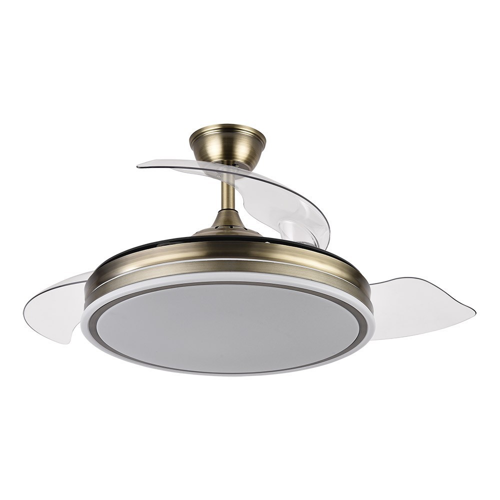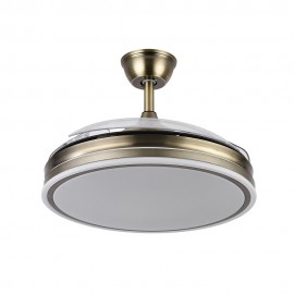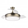 Ventilateur intérieur avec modèle BAYOMO intégré LED en finition en cuir satiné avec 3 lames de métacrylate très résistantes de couleur transparente. Il est équipé de moteur DC et six vitesses. Mesures 32x55 centimètres avec lames pliées et 32x108 centimètres avec les lames déployées.
