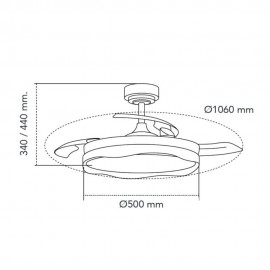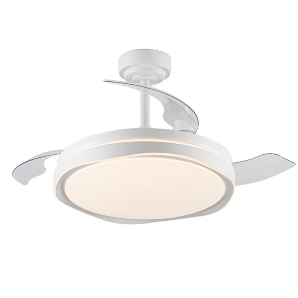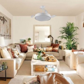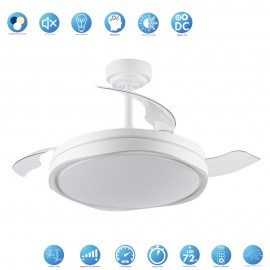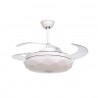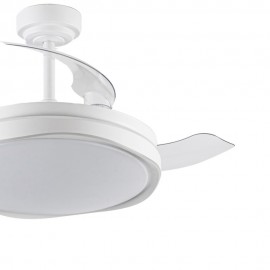 Vent de la série RIZOS en métal, avec aspes polycarbonate et diffuseur acrylique, en couleur blanche, avec trois lames déroulantes. Moteur DC, six vitesses.