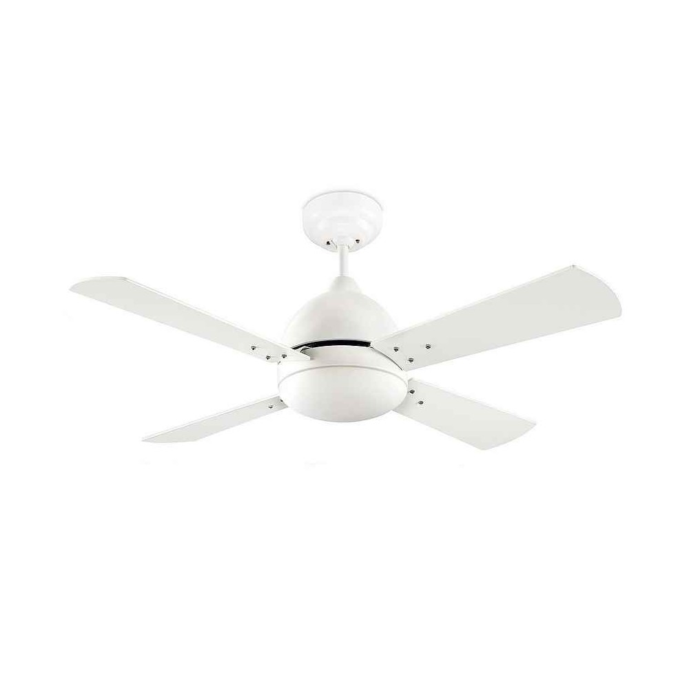 Ventilateur de plafond avec modèle léger BORNEO de mesures 106 cm de diamètre et 39 cm de hauteur, en métal blanc fini, avec tulipe en verre opal, et 4 asps en plaque blanche réversible en contreplaqué. Il dispose d'un moteur AC 3 vitesses avec une puissance de 12-21-40 w et Rpm 100-145-185.