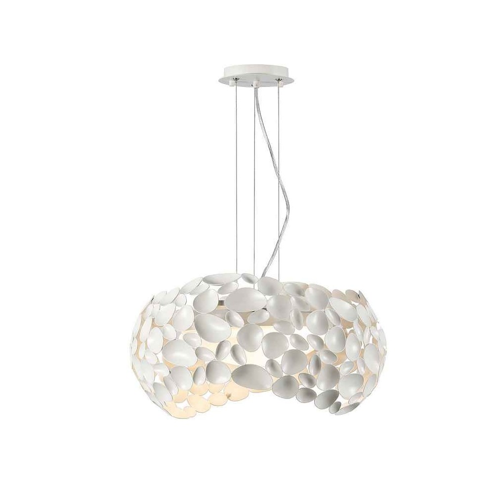 Lampada a 5 luci, modello Narisa di Schuller, realizzata in metallo con finitura bianca opaca, di 46 cm di diametro e 26 cm di altezza, dispone di diffusore acrilico interno, è regolabile nella sua installazione? n da 45 a 135 cm. Illuminazione per cinque lampade tipo G9 di 6 W incluse.