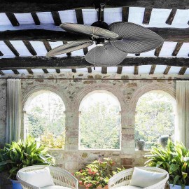 La finitura delle pale è wengué e non sono reversibili. Azionato a catena. Ha tre velocità regolabili. Questo ventilatore ha una funzione inversa.